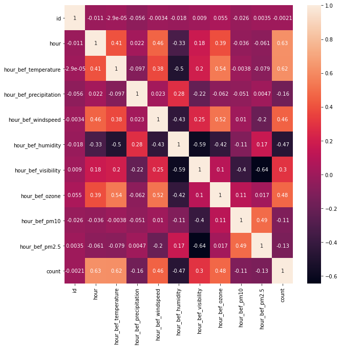 sns.heatmap(train.corr(),annot=True) # annot: 숫자 표시