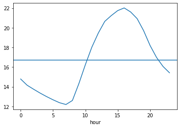 plt.axhline(train.groupby('hour').mean()['hour_bef_temperature'].mean())