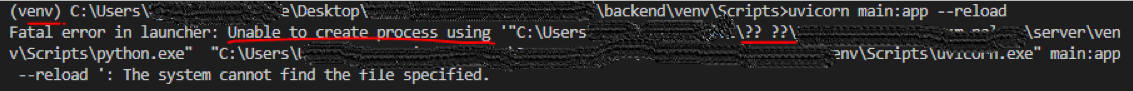 fatal error in launcher unable to create process using