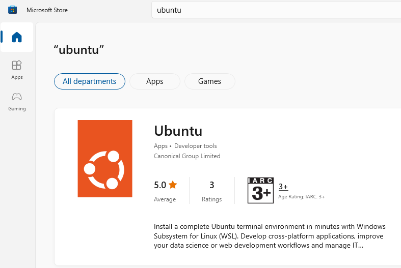 Microsoft store 에서 ubuntu 설치 (KALI도 있더라)